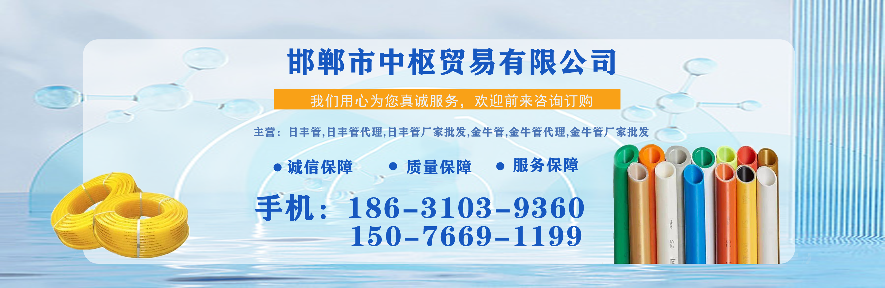 邯鄲市中樞貿易有限公司主營日豐管,日豐管代理,日豐管廠家批發(fā),金牛管,金牛管代理,金牛管廠家批發(fā)等,質量可靠,值得信賴! 我公司在產品行業(yè)積累了豐富的經驗,具有嚴格的管理制度,同時引進先進的生產設備和生產技術,一如既往的為廣大客戶提供質優(yōu)價廉的產品。創(chuàng)辦多年來在市場上贏得較好的口碑,銷售網絡覆蓋全國各個省市及地區?! ≠|量為先,信譽為重,管理為本,服務為誠,我們將致力于這一經營理念,關注時代發(fā)展,用先進的技術,不斷創(chuàng)新求實,以更優(yōu)的質量,更好的服務來滿足我們的廣大客戶。 公司理念:勇于進取、開拓創(chuàng)...